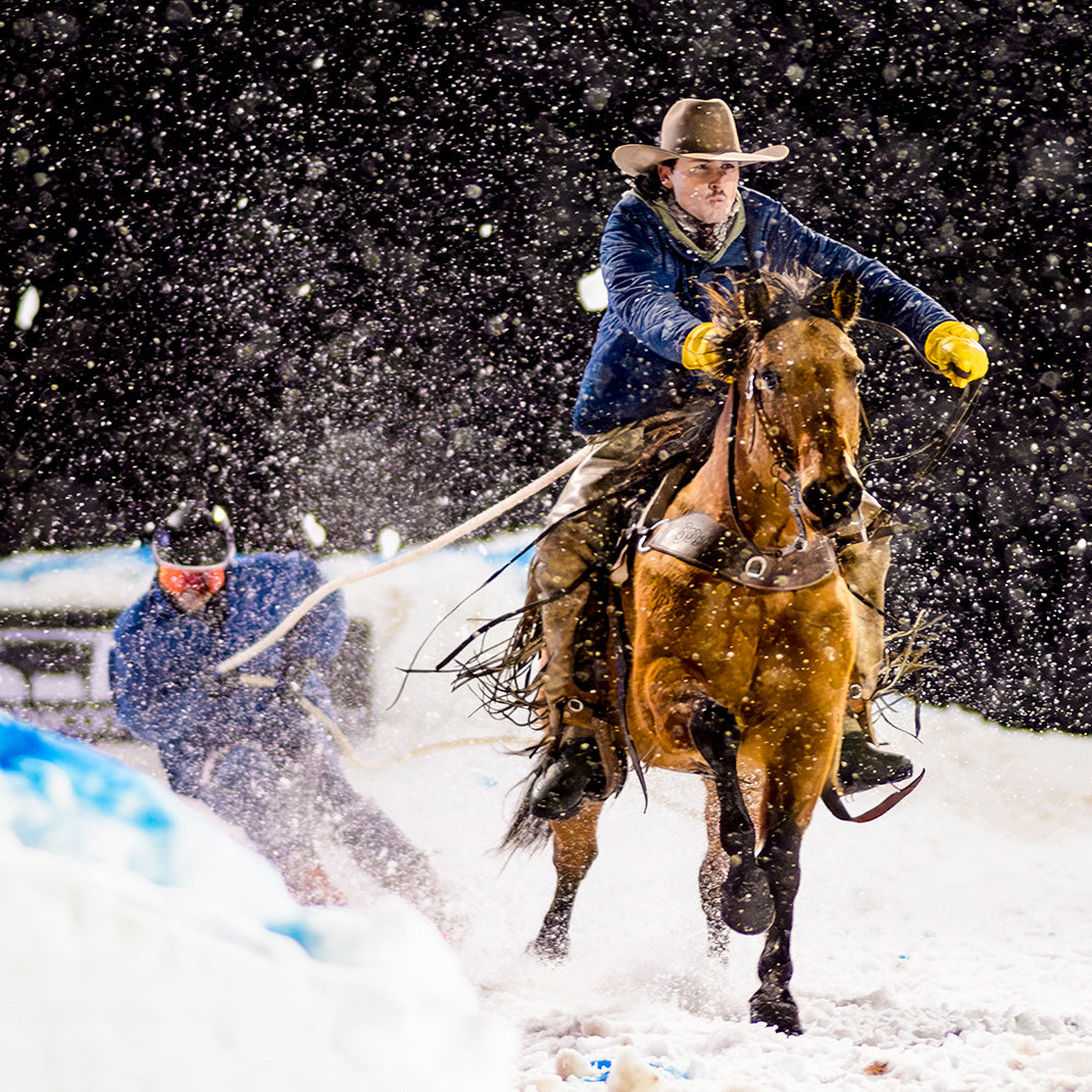 Skijoring is an adrenaline-fueled winter sport where a horse and rider pull a skier at high speed through a course packed with gates, jumps, and rings. It’s the ultimate collision of Western cowboy grit and ski culture thrill - fast, wild, and unforgettable. Competitors battle for cash, prizes, and glory, while spectators enjoy not only the races but a full-on festival atmosphere with food, music, and non-stop entertainment.